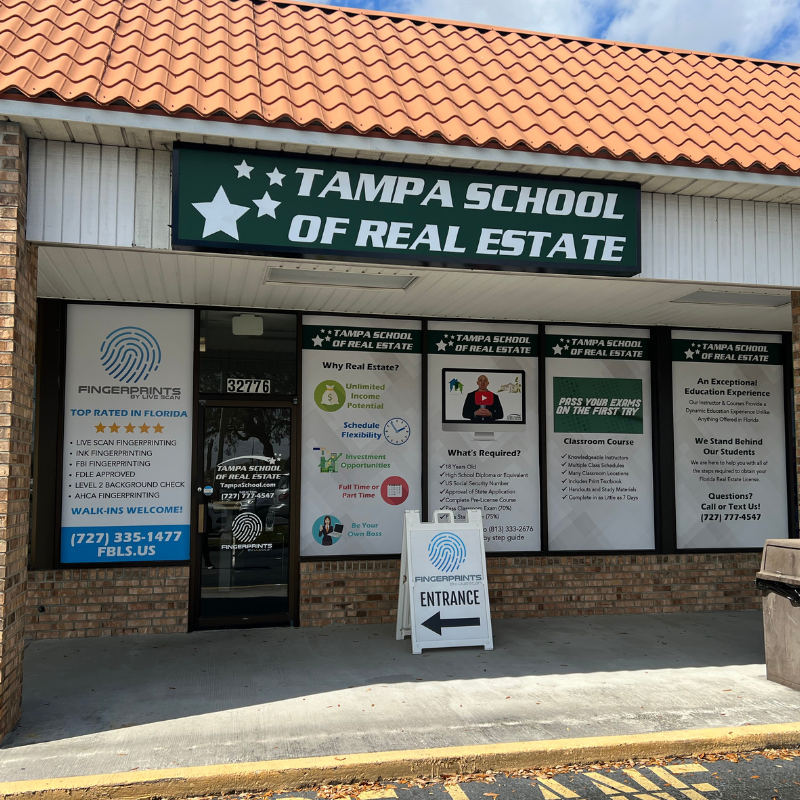 Located inside of Tampa School of Real Estate Palm Harbor which is on the corner of US HWY 19 and Tampa Road in the Northern Pinellas Area.